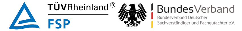 Wir sind Senior-Mitglied im BDSF – Bundesverband Deutscher Sachverständiger und Fachgutachter e.V. Unsere Mitgliedsnummer lautet 8261779 und Partner der FSP-Unternehmensgruppe; einer 100% Tochter des TÜV Rheinland